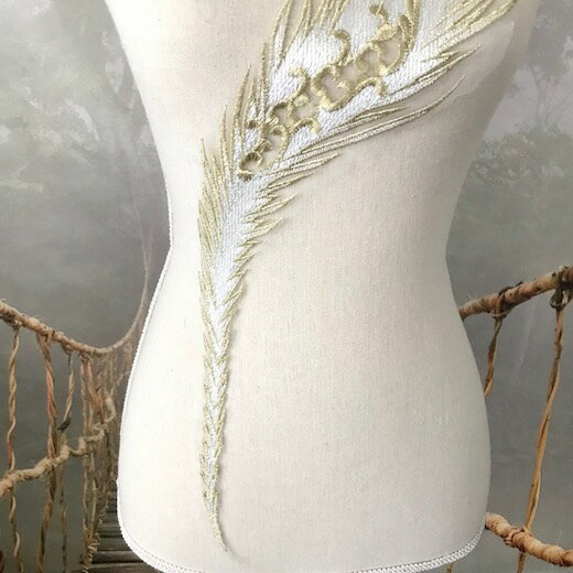 キラキラ 豪華な高級感のあるホワイト・ゴールドのフェザー モチーフです。